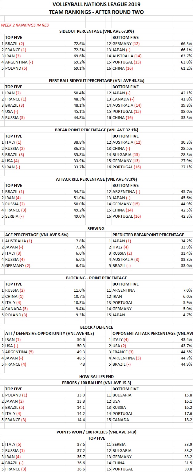 Last week’s list is here.  Week 1’s list is here.  All VNL 2019 team and player lists are here.