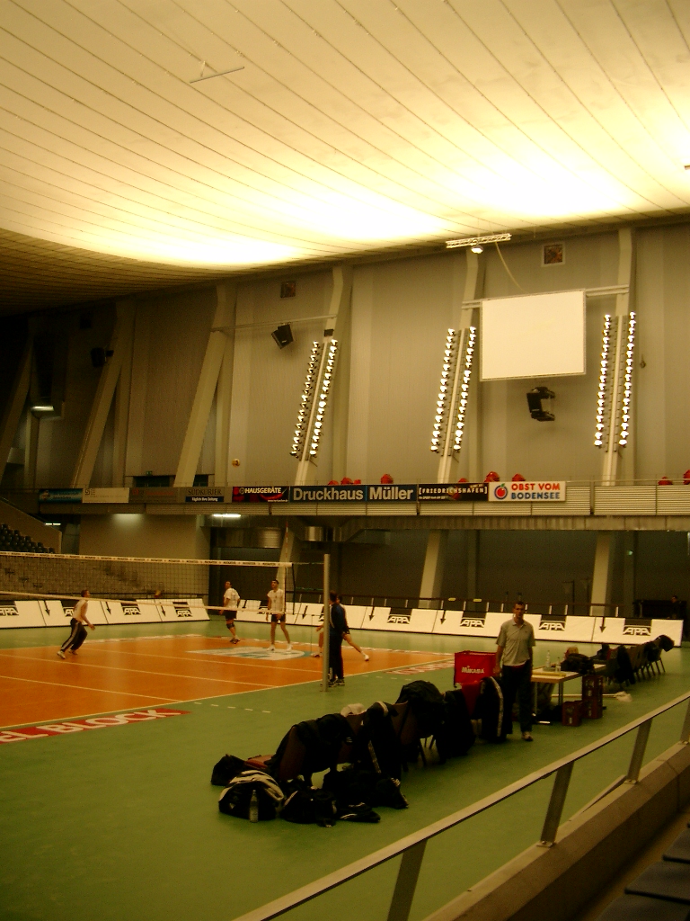 I heard this week along with all volleyball fans about the closing of ZF Arena, the iconic volleyball stadium in Friedrichshafen. My history there literally goes back to the first official match played. For whatever reason, the opening match of the stadium was VfB Friedrichshafen against my team, SV Bayer Wuppertal. A quick look through hard drive tells me the match was played in front of 4,000 spectators on December 3rd 2003. We lost 3-1. They were much better than us, and the word after the game was that they had let us win a set on purpose to make it a decent spectacle. Of course, I have no way of knowing if that is true, nor does it matter if it is. I do remember that the stadium was impressive. Much was made of the state of the art lighting system, from which no direct light reached the court.