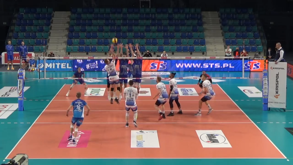 So in the above clip, the attacker plays a shot into the block on a difficult high ball, but is unfortunately blocked. When watching this, we could think that it was a smart play that he tried for the tool off the outside hand of the blocker. The blocker will often move his hands on this play and the ball will drop out of court for a point. We could also think this is a smart play because he tried for the recycle but his cover players couldn’t retrieve the ball.