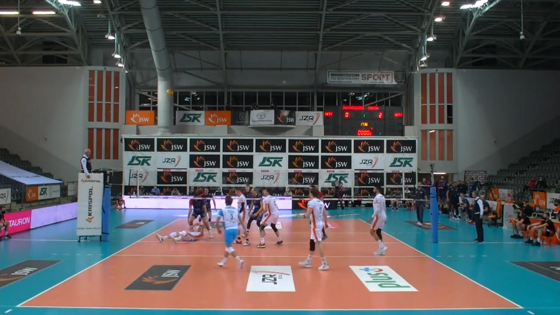 In photo 1, the white team player is under the net. In photo 2, the white team libero is under the net with the attacker forced to retreat to the 3m line. In photo 3, the attacker takes the risk to jump with an opponent somewhere under his feet. If he had landed on him, it still wouldn’t have been a fault. Click on the photos to see them full size. And scroll down for the video.