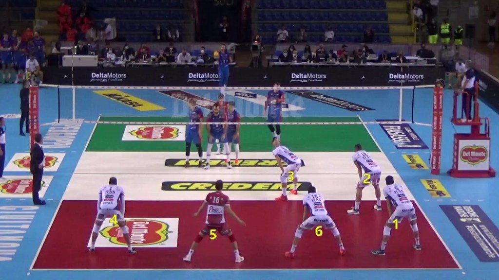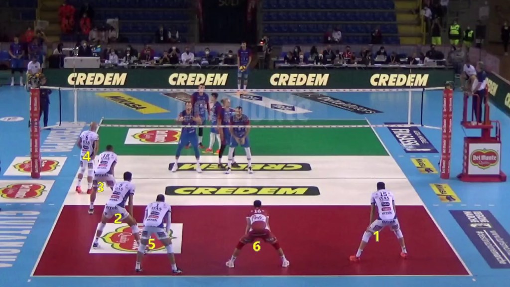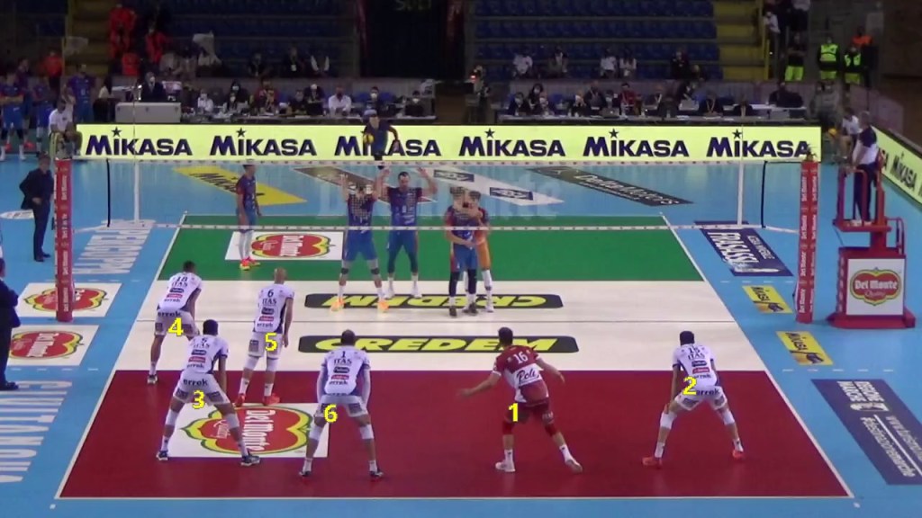 P3 – A normal 4 player reception line. Michieletto spikes from position 1.