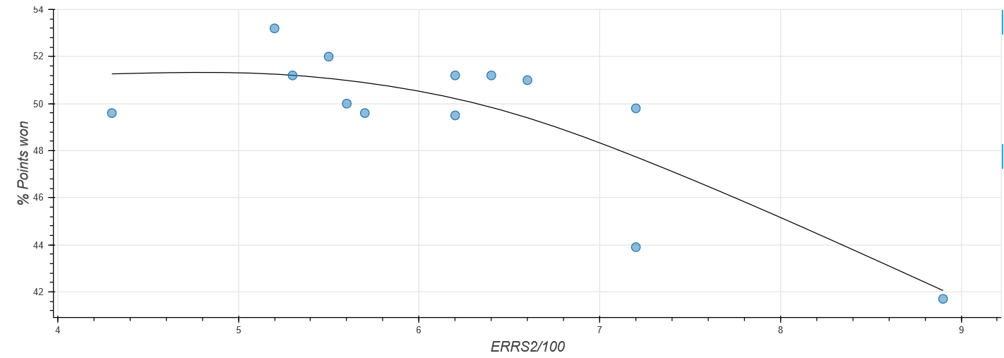 1) I think most fans / commentators are in the 1 = 1 understanding of errors. We know from data and experience that is not true. Players/coaches intuitively understand to some degree as evidenced by serving strategy, but I think a lot are still in or around the 1 = 1 group.